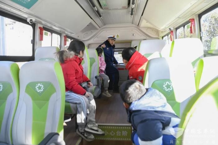 “電動自行車停充守規(guī)范,火災(zāi)隱患遠離保平安”“119,生命熱線,平安音符”“濃煙關(guān)門,固守待援”……消防主題通學(xué)公交車在整體設(shè)計上與消防元素緊密結(jié)合,車身外觀貼有醒目的消防宣傳標(biāo)語;車內(nèi)看板、扶手、座椅靠背等部位不但設(shè)置了醒目的消防主題元素和提示性宣傳標(biāo)語,還介紹了防滅火常識、滅火器使用方法、疏散逃生等一系列消防安全知識,同時,座套也被精心設(shè)計,繪制了色彩鮮艷、生動形象的消防小常識,讓上下學(xué)的乘客在舉手投足間、潛移默化中獲取消防知識,達到“耳濡目染、潛移默化”的宣傳效果,豐富了他們的乘車體驗,將路途乘車中的時間變得充實而有意義。