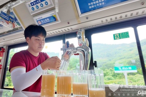 步入車廂,一場(chǎng)沉浸式的啤酒文化之旅即刻開啟。“一品牌一主題”的場(chǎng)景設(shè)計(jì)豐富體驗(yàn)維度,青西金啤等品牌的隨車專業(yè)人員會(huì)為乘客推薦不同口味的精釀啤酒,配有專業(yè)設(shè)備確保啤酒口感。“公交+啤酒”的融合讓公交突破了傳統(tǒng)運(yùn)輸功能,變身為“會(huì)跑的啤酒節(jié)分會(huì)場(chǎng)”。