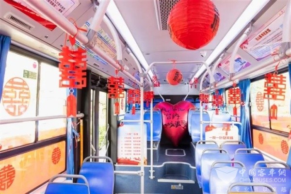 2023年國(guó)慶期間,新娘吳女士和新郎創(chuàng)新選擇了公交婚車(chē)。“我當(dāng)了好幾次伴娘,每次都坐的是常見(jiàn)的小轎車(chē),一車(chē)人互不認(rèn)識(shí),一路上無(wú)交流,很尷尬。”吳女士說(shuō),租公交車(chē)當(dāng)婚車(chē)是她的主意。她希望將雙方互相認(rèn)識(shí)又特別重要的朋友聚在一輛車(chē)上,既熱鬧喜慶,又低碳環(huán)保。于是,她請(qǐng)花藝師舅媽精心裝飾公交婚車(chē):車(chē)頭向日葵花束向陽(yáng)而生,車(chē)廂里國(guó)旗與喜字洋溢著喜慶。接親途中等綠燈時(shí),親友團(tuán)還向附近車(chē)道的車(chē)主派發(fā)喜糖,分享喜悅,當(dāng)然,他們也收獲了陌生人的衷心祝福。“這場(chǎng)公交婚禮,讓人終生難忘。”吳女士開(kāi)心地表示。