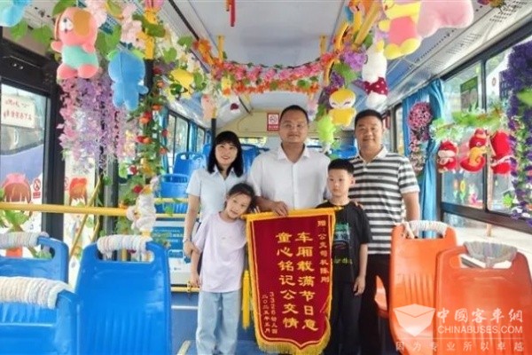 坐在這輛童話巴士上,孩子們開(kāi)心地嘰嘰喳喳。駕駛員平穩(wěn)駛過(guò)每個(gè)彎道,整個(gè)過(guò)程耐心地為老師和孩子服務(wù),讓大家非常感動(dòng)。后來(lái),該園老師帶著兩名小朋友給駕駛員送去了錦旗,錦旗上書(shū)“車(chē)廂載滿節(jié)日意,童心銘記公交情”。