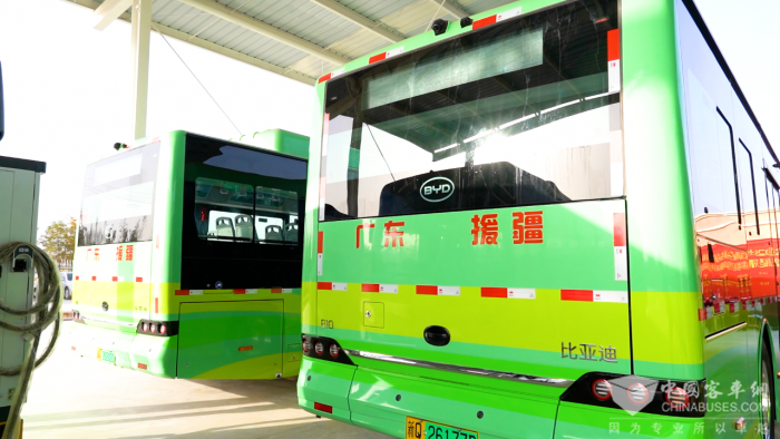 廣東援疆捐贈的新能源公交發(fā)車 (合米提江·吐爾洪 攝)