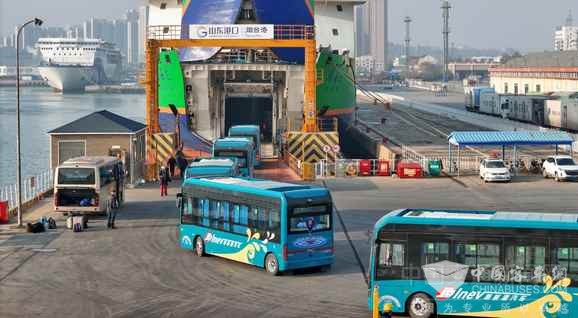 電動(dòng)公交車乘船渡海峽