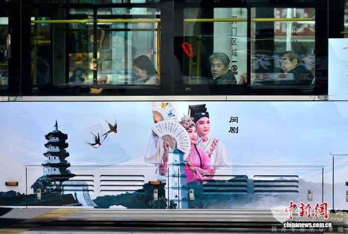 2026年1月8日,噴上精美非遺圖案的公交車行駛在福州街頭。中新社記者 張斌 攝