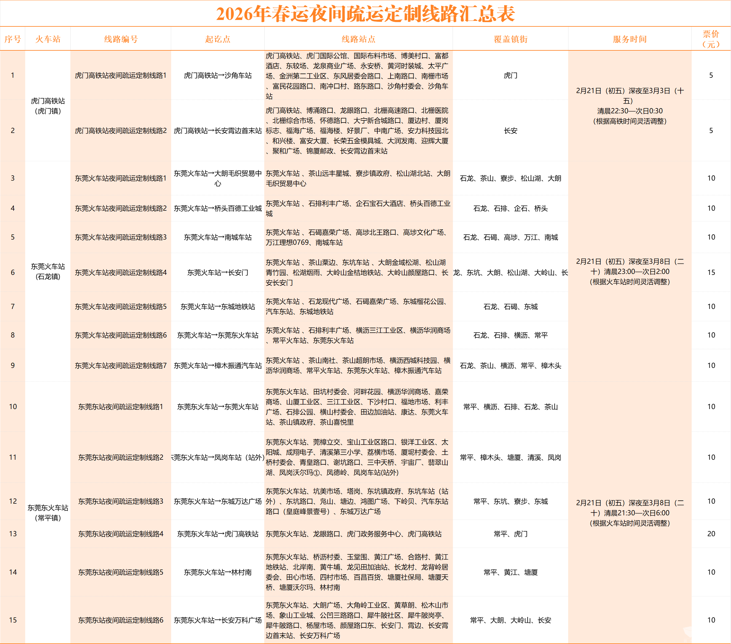 附:15條春運夜間疏運定制線路信息匯總表