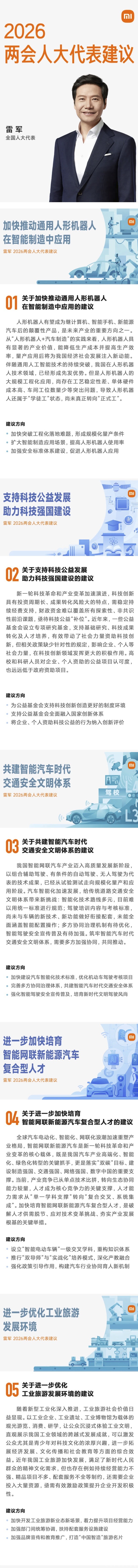2026全國(guó)兩會(huì):人大代表雷軍帶來(lái)五條建議 引發(fā)關(guān)注!