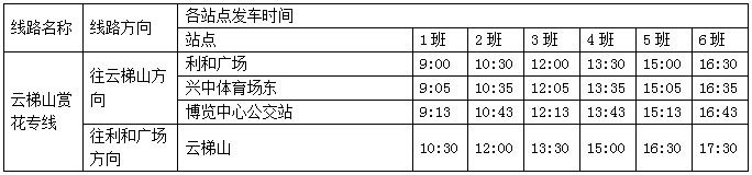 以下為云梯山賞花專線運(yùn)行時(shí)刻表: