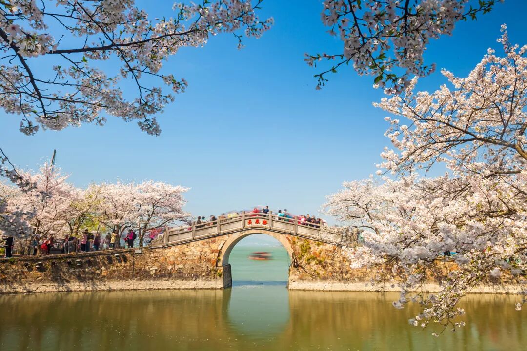 黿頭渚作為知名賞櫻勝地,擁有“水陸空”全景,3萬株櫻花如云如霞。