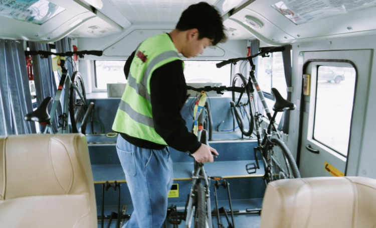 2024年年底推出的“順騎自然”單車巴士東灘專線,就將公交車改造成保障車,裝載自行車隨騎行團隊移動。