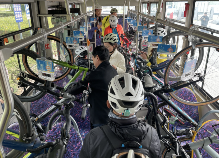 此次共裝載16輛自行車,未來如果能將大巴行李艙利用起來,能裝載的自行車數量或許更多。