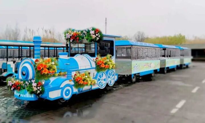 景區(qū)內(nèi)的濕地小火車被繽紛花藝環(huán)繞