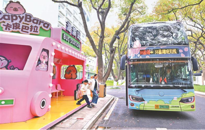 櫻花掩映下,印著卡皮巴拉圖案的主題雙層巴士亮相環(huán)蠡湖線,吸引不少家長帶著孩子前來打卡。一年級學生周珂銳的媽媽一早便帶著孩子來體驗。這條環(huán)蠡湖線路串聯(lián)起漁父島、渤公島、蠡園、萬象城等春游點位,一路湖景、花景相伴。“一天內可以反復乘坐,一個小時一班,我們到了一個景點先下來玩一會兒,再坐下一班繼續(xù)走,不用一直趕路。”周珂銳媽媽說。“這次不只是換個外觀,而是把整條線路當成一次春游體驗來設計。”無錫公交錫巴士運務分公司產(chǎn)品研發(fā)部主管徐陽介紹,線路設計時充分考慮了親子家庭的出行節(jié)奏,希望乘客能夠按照自己的安排隨走隨停,把乘車過程本身也變成春游體驗的一部分。