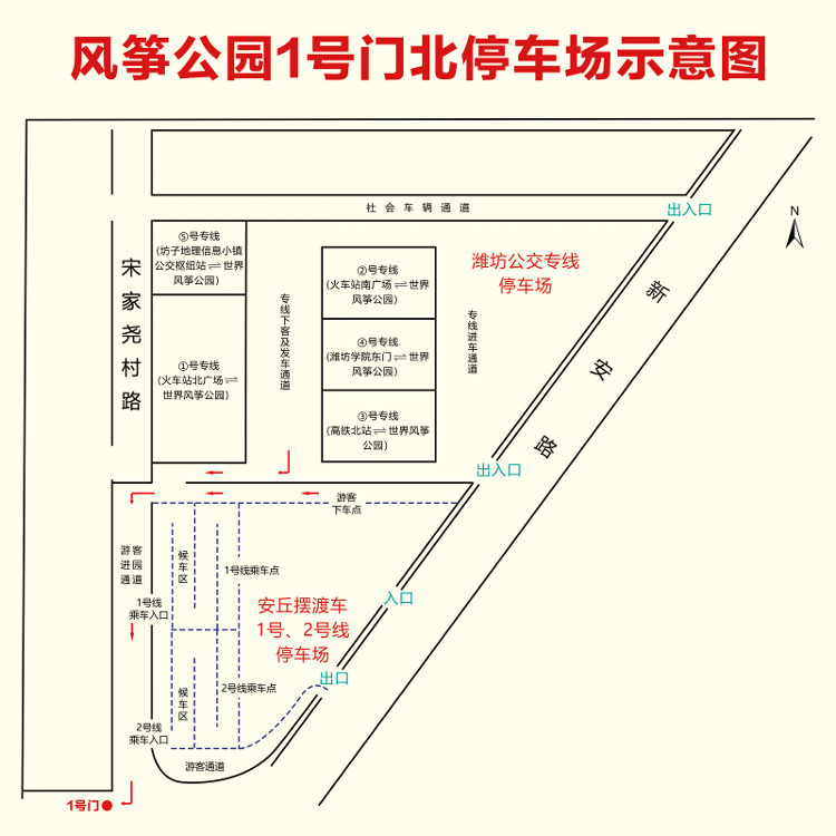 擺渡車1號線:P2閏成北路停車場?世界風(fēng)箏公園1號門北停車場