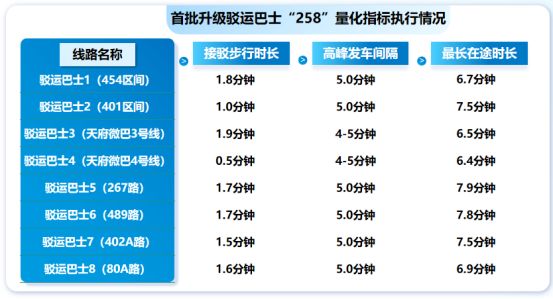 首批升級(jí)的駁運(yùn)巴士已在錦江、成華、青羊、金牛、天府新區(qū)上線,全面踐行“258”服務(wù)標(biāo)準(zhǔn)。