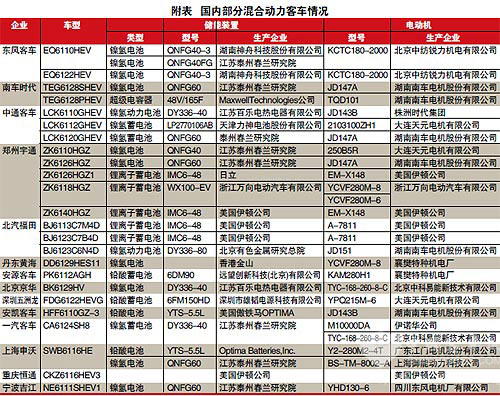 目前國內(nèi)常見的并聯(lián)式混合動力客車有EQ6110HEV1、BJ6113C7M4D、BJ6123C7B4D、DD6118HES21等。