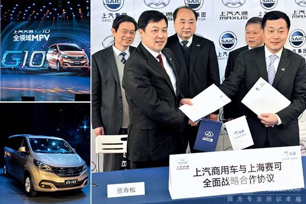 2月28日,G10發(fā)布會(huì)當(dāng)天,上汽商用車公司總經(jīng)理藍(lán)青松和上海賽可電子商務(wù)有限公司CEO夏軍簽訂戰(zhàn)略合作,G10將推出一款時(shí)尚版在3月28日正式上線的上汽集團(tuán)O2O電商平臺(tái)——車享網(wǎng)獨(dú)家授權(quán)銷售。