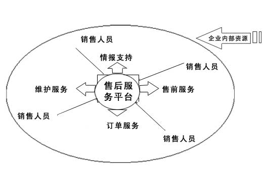關(guān)系營銷的最根本的問題,是用戶滿意并且達成訂單。從客車采購的談判到簽單,從交車到使用培訓(xùn),以及今后的售后服務(wù),這是一個漫長的、多環(huán)節(jié)的過程,這其中會涉及到企業(yè)不同的職能部門,為達到顧客滿意的目的,各部門要協(xié)調(diào)統(tǒng)一,這是一個較大的管理難題,這在客觀上要求企業(yè)要有相應(yīng)組織架構(gòu)的調(diào)整,整合企業(yè)各職能部門的資源,實現(xiàn)對顧客要求的快速準確的反應(yīng)。筆者設(shè)想提出建立企業(yè)營銷服務(wù)平臺,為銷售提供全方位的服務(wù)和支持,成為企業(yè)面向市場的服務(wù)平臺,成為銷售員、顧客及企業(yè)內(nèi)部資源的信息交流節(jié)點。