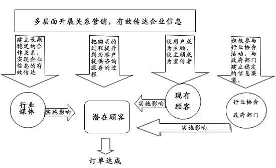 其次,關(guān)系營銷以產(chǎn)品銷售為最終目的。如果良好的關(guān)系不能帶來訂單,則這種關(guān)系營銷是無效。持續(xù)溝通,了解需求,滿足服務(wù),實際訂單是關(guān)系營銷的主導(dǎo)思想。