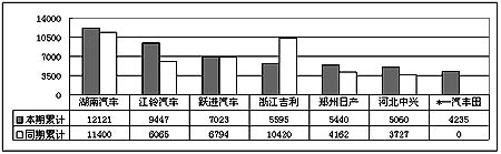 注:其他企業(yè)累計銷量為廣州羊城(162)、成都新大地(124)、揚州亞星(88)、成都隆鑫(66)、四川汽車(59)、中信機(jī)電(47)、東風(fēng)起亞(36)、湖南三湘(30)、安徽安凱(25)、福建八閩(10)、華航汽車(1)、南燕汽車(0)、沈飛客車(0)、江蘇亞星(0)、鄭州宇通(0)、鄭州輕型(0)、武漢中譽(yù)(0)、三江雷諾(0)、湛江三星(0)、重慶專用(0)、四川公路(0)、成都王牌(0)、云南金馬(0)。