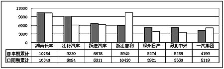 2004年1~5月份輕型客車產(chǎn)量對比(前7家企業(yè)) 單位:輛