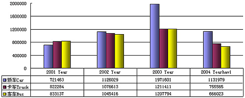 年初,從全國(guó)交通工作會(huì)議上得知:2003年共完成交通基礎(chǔ)設(shè)施投資3900億元,同比增長(zhǎng)12%,其中公路建設(shè)完成3500億元,同比增長(zhǎng)9%。2003年新增公路通車?yán)锍?.6萬公里,其中新增高速公路4600公里,全國(guó)公路通車?yán)锍踢_(dá)到181萬公里,其中高速公路近3萬公里,實(shí)現(xiàn)了"五縱七橫"國(guó)道主干線系統(tǒng)第一階段建設(shè)目標(biāo)。受交通部《收費(fèi)公路車輛通行費(fèi)車型劃分》標(biāo)準(zhǔn)影響,39座客車將有可能成為2004年亮點(diǎn)。農(nóng)村公路建設(shè)力度之大前所未有,全年共完成新改建農(nóng)村公路10.2萬公里;2004年新改建農(nóng)村公路10萬公里。公路建設(shè)的如此快速發(fā)展和交通基礎(chǔ)設(shè)施投資之大,無疑為擴(kuò)大公路客車市場(chǎng)提供了廣闊前景。