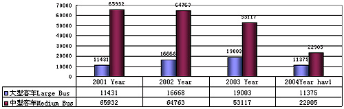 從中汽協(xié)(客車部分)結(jié)合中通統(tǒng)計(jì)來看,由于城市化水平的提高,城市客車連續(xù)三年以平均40%的速度增長(zhǎng),以生產(chǎn)公交車為主的企業(yè)業(yè)績(jī)?cè)鲩L(zhǎng)較快,而以生產(chǎn)底盤、旅游車、團(tuán)體車等客車廠家出現(xiàn)一定程度的下滑,并紛紛以技術(shù)引進(jìn)、兼并重組等方式開辟城市客車戰(zhàn)場(chǎng),并取得了一定的成效?梢哉f,城市客車的迅猛發(fā)展支撐了大中型客車市場(chǎng)新的繁榮。