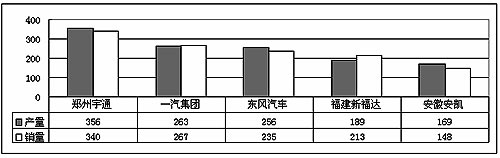 2004年6月份大型客車前五家產(chǎn)銷對(duì)比 單位:輛