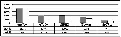2004年6月份微型客車前五家產(chǎn)銷對比 單位:輛