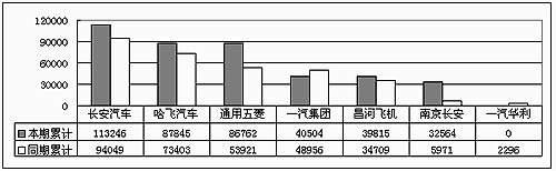 1~6月份微型客車企業(yè)(8家)前五家企業(yè)的6月份產(chǎn)量與去年同期相比,除一汽集團(tuán)(-15.02%)外,其余四家均有增長,分別是長安汽車(21.91%)、哈飛汽車(19.99%)、通用五菱(55.65%)和昌河飛機(jī)(8.17%)。微型客車企業(yè)的累計(jì)產(chǎn)量是337345輛,與同期累計(jì)相比增幅為24.79%。