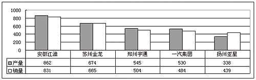 2004年8月份大型客車前五家產(chǎn)銷對(duì)比