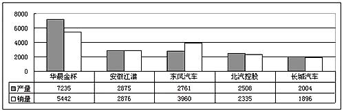 2004年8月份輕型客車前五家產(chǎn)銷對(duì)比