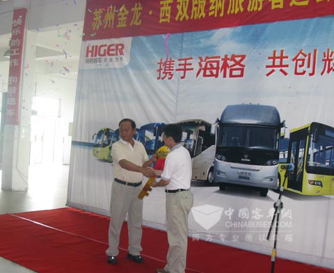 2009年6月16日,云南西雙版納旅游客運汽車有限公司總經(jīng)理朱雨田、副總經(jīng)理唐彥生、總經(jīng)理助理劉澤新一行來到海格客車廠,提取2009年預(yù)定的72臺中型客車。緣何西雙版納旅游客運在大環(huán)境不利的背景下采購如此大批量的客車?為此,專訪了朱總一行: