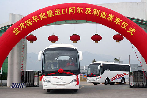 2007年10月14日,金龍客車連續(xù)第四年批量出口沙特,至此,金龍客車在沙特市場上的保有量已超過1000輛,居國產(chǎn)品牌第一位;12月13日,又有一批大金龍高檔客車批量出口北非國家阿爾及利亞;僅僅過了兩天,大金龍打造的國際軍車,再度駛?cè)氚⒙?lián)酋,供阿聯(lián)酋軍方——皇家衛(wèi)隊專用……在剛剛過去的2007年,金龍客車頻頻走出國門,在海外市場有上好表現(xiàn)。