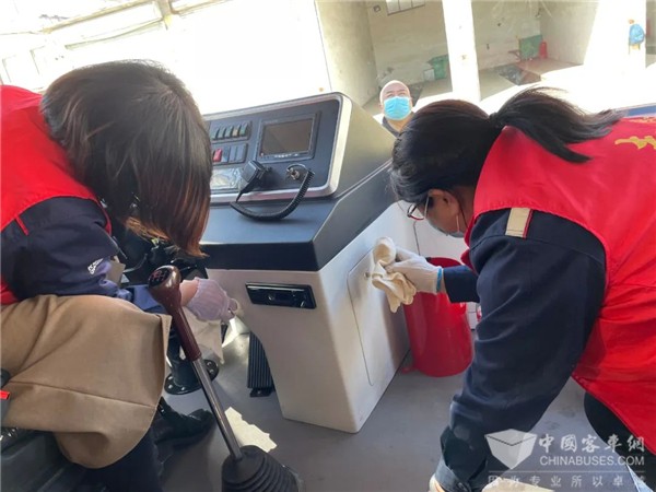 車(chē)輛下線調(diào)試后,入庫(kù)交驗(yàn)前需要清理干凈車(chē)內(nèi)衛(wèi)生,青年志愿者們以一腔熱血克服困難,自告奮勇地做起了清潔工,認(rèn)真向老師傅學(xué)習(xí),清掃完車(chē)輛讓老師傅驗(yàn)收合格后才算完成。