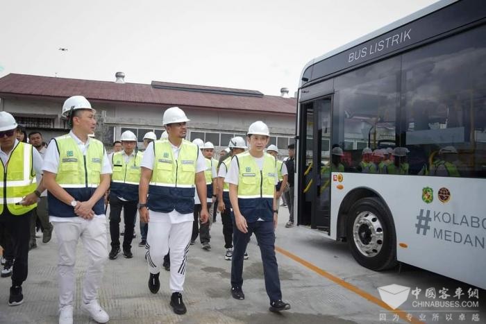 棉蘭市長Bobby Nasution(前排右二)參觀海格純電公交