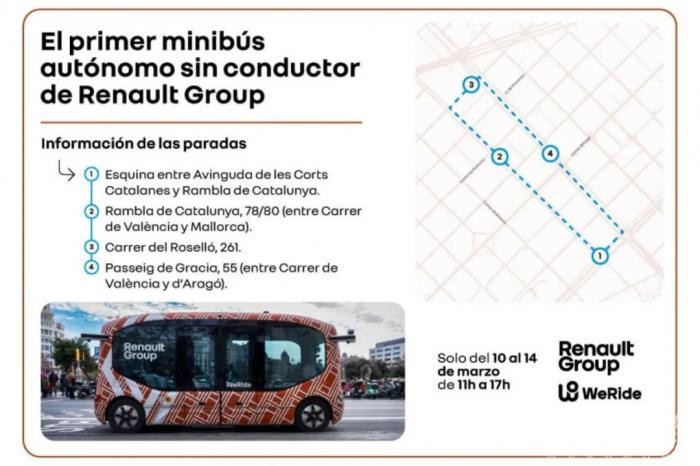 經(jīng)巴塞羅那市政廳與西班牙交通總局(Directorate General of Traffic, DGT)授權(quán)許可,本次文遠小巴試運營服務(wù)將于3月10日至14日、每天11:00-17:00向公眾開放,運營環(huán)線超2公里,沿途設(shè)置4個上下車站點,途徑巴塞羅那巴特羅之家(Casa Batlló)和米拉之家(La Pedrera)等地標性建筑。