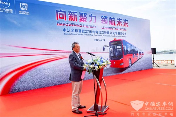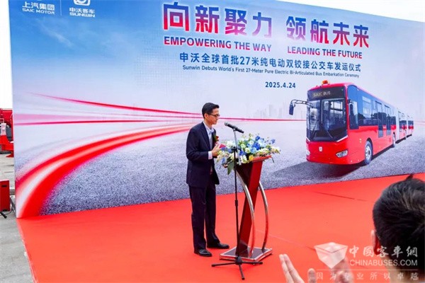 上汽集團(tuán)國際業(yè)務(wù)事業(yè)部總經(jīng)理助理鄭浩在致辭中指出:此次發(fā)運(yùn)墨西哥的27米純電動雙鉸接公交車,是申沃客車在技術(shù)層面的重大突破,也是上汽集團(tuán)踐行“全球戰(zhàn)略車型、全球協(xié)同創(chuàng)新”理念的重要里程碑,更是國際業(yè)務(wù)事業(yè)部對南美市場長期承諾的兌現(xiàn)。申沃客車憑借過硬的產(chǎn)品實(shí)力與系統(tǒng)解決方案能力,這批車輛將為墨西哥及南美其他城市的公共交通帶來全新體驗(yàn),助力當(dāng)?shù)貙?shí)現(xiàn)綠色交通轉(zhuǎn)型。