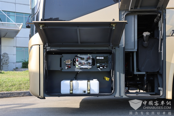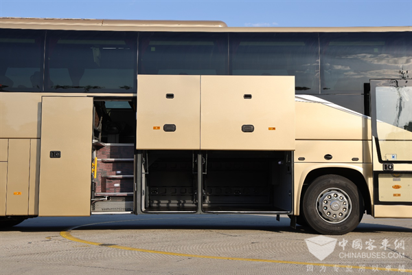 這款V12豪華客車(chē)的行李艙使用率較高,采用平行上開(kāi)門(mén)的設(shè)計(jì),足足有10m³,相比同類(lèi)競(jìng)品行李空間多2-3m³。