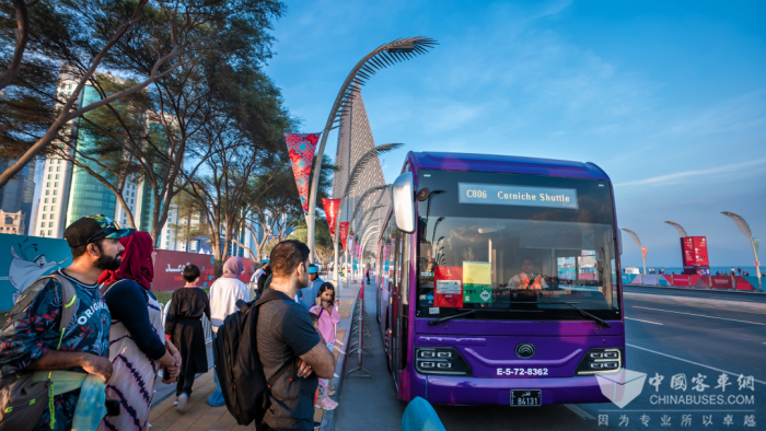 (圖1)為卡塔爾國(guó)際足球盛會(huì)提供接駁服務(wù)的宇通客車