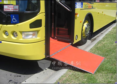 為方便乘客上下車,傲群公司推出的超低地板公交車
