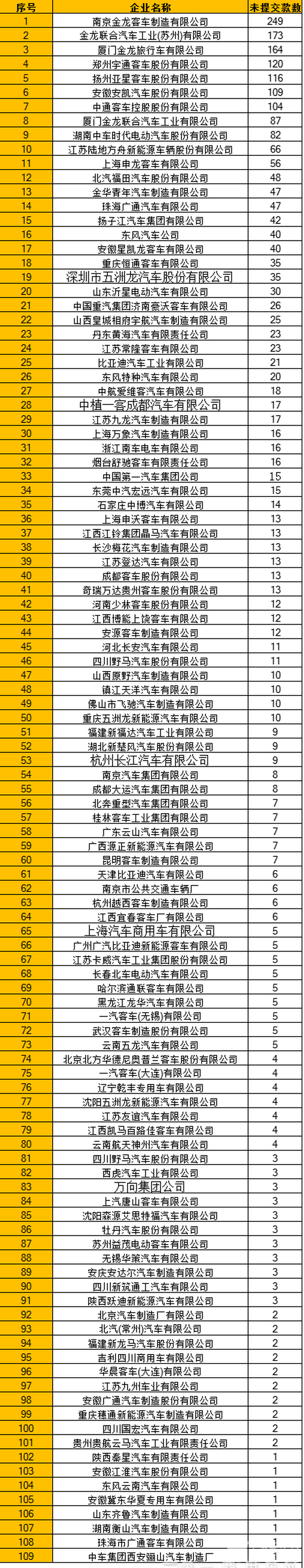 根據(jù)統(tǒng)計發(fā)現(xiàn),此次共涉及109家新能源客車企業(yè),幾乎所有國內(nèi)的新能源客車生產(chǎn)企業(yè)都中招。100輛以上車型公告被暫停的企業(yè)多達(dá)7家。南京金龍最多,249款車型公告被暫停,蘇州金龍有173款車型公告被暫停,廈門金旅164款車型公告被暫停。宇通客車120款車型公告被暫停。揚州亞星客車116款車型公告被暫停。安凱客車109款車型公告被暫停。中通客車104款車型公告被暫停。