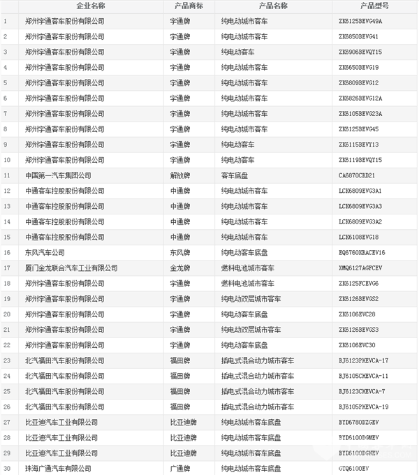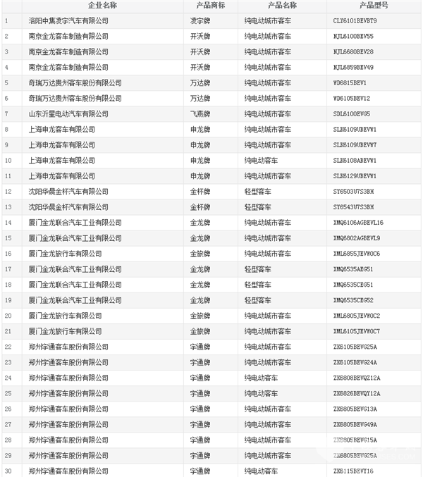 客車網(wǎng)了解到,宇通客車、福田汽車、比亞迪、東風(fēng)汽車、中通客車、金龍客車、金旅客車、申龍客車、中車電動(dòng)、蘇州金龍等都有多款客車產(chǎn)品入圍,其中宇通客車?yán)塾?jì)有25款新能源客車上榜,位列榜首;福田汽車共有14款客車產(chǎn)品上榜,包括13款新能源客車和1款輕型客車,位列第二;比亞迪有6款純電動(dòng)客車入圍,位列第三。