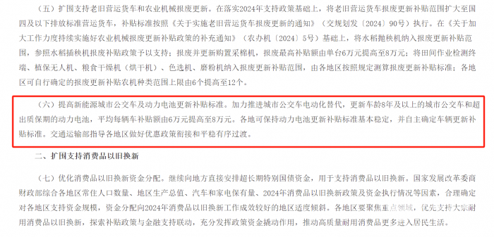 1. 新能源公交補貼力度提升:車齡8年及以上城市公交車和超質保期動力電池的更新補貼從平均每輛6萬元提高至8萬元,并鼓勵低地板、低入口等先進車型的推廣。