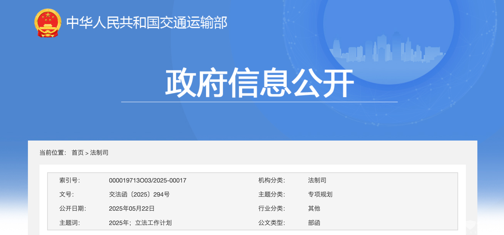 交通運輸部關于印發(fā)2025年立法工作計劃的通知