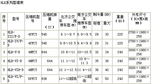 松芝HLB系列空調(diào)參數(shù)配置