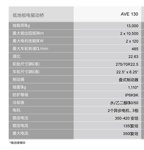 采埃孚低地板電驅(qū)動車橋AVE130 參數(shù)配置