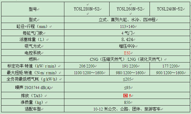 YC6L國(guó)5天然氣發(fā)動(dòng)機(jī)主要技術(shù)參數(shù):