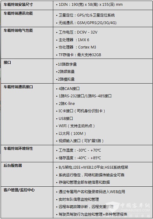 有完整的車況信息記錄和處理、遠(yuǎn)程傳送和故障診斷(OBD-2接口)、車輛維護(hù)保養(yǎng)管理等功能;