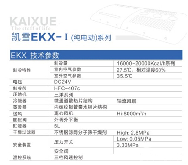 鄭州凱雪EKX-Ⅰ(純電動)系列空調(diào)參數(shù)配置