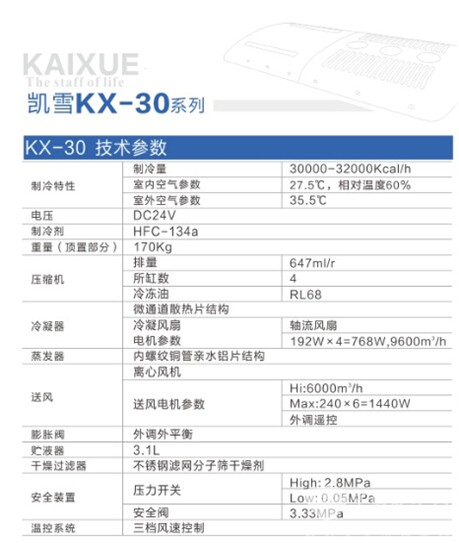 鄭州凱雪KX-30系列空調(diào)參數(shù)配置
