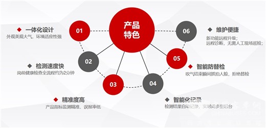體溫檢測:非接觸式紅外測溫,酒檢的同時檢測體溫,體溫檢測結(jié)果實時顯示。